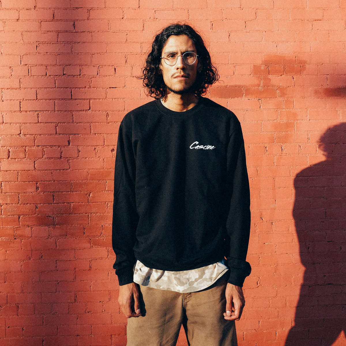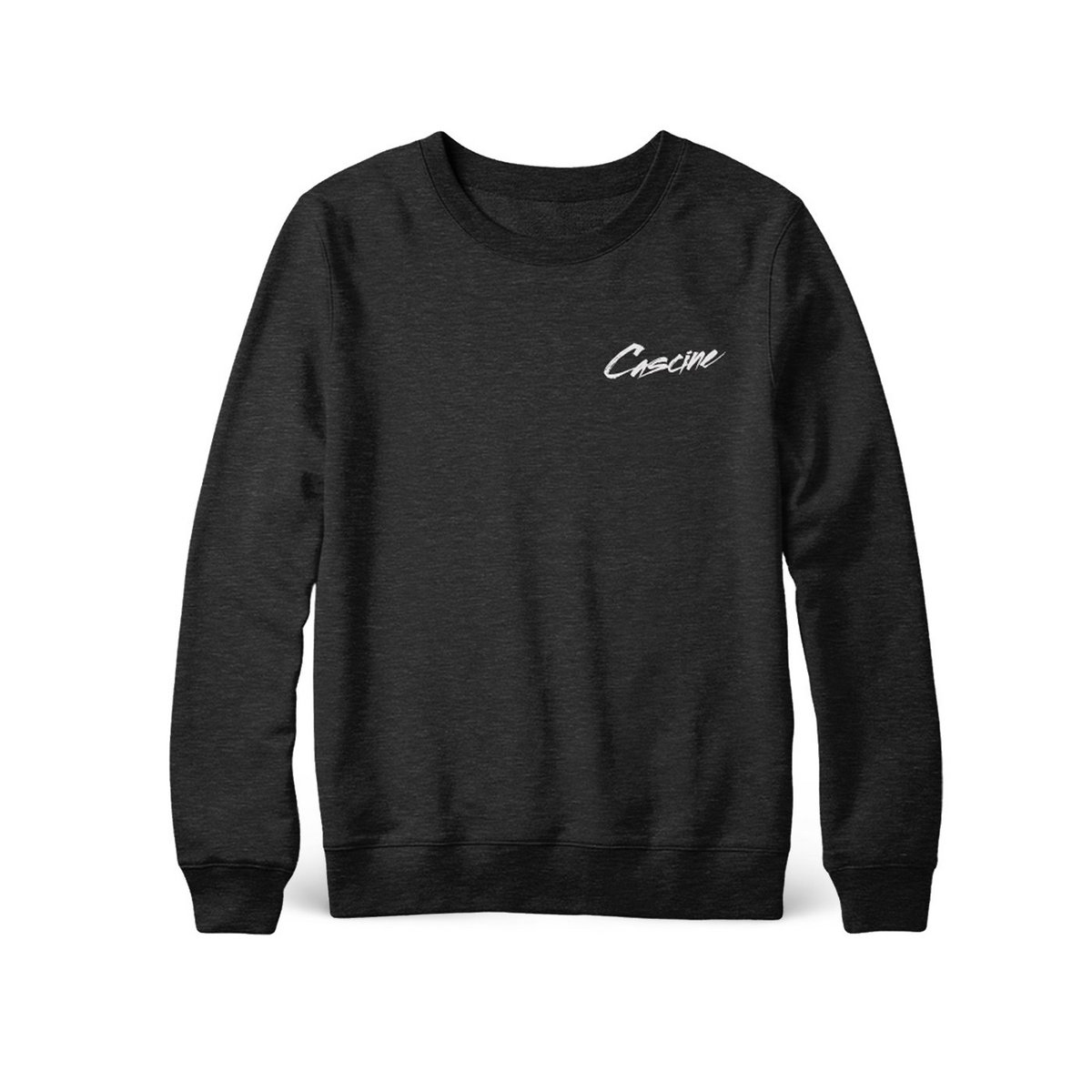 Cascine's script logo, printed on a premium black crewneck. Sweatshirts are 100% cotton from Independent Trading Co. with hand-stitched Cascine hangtag.